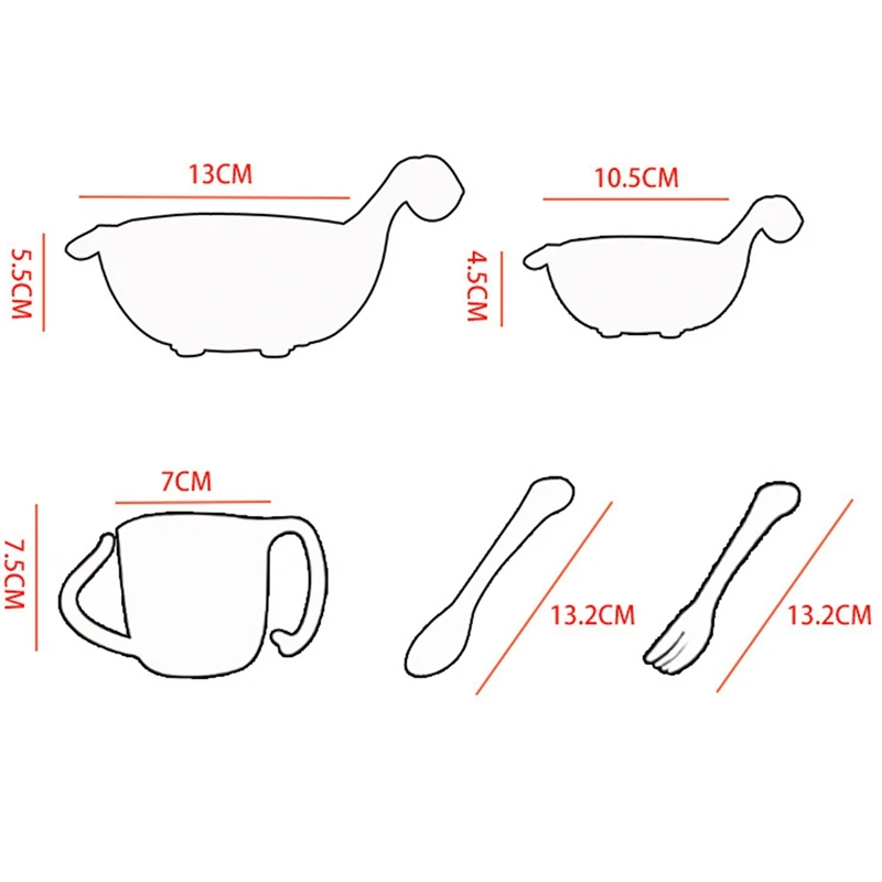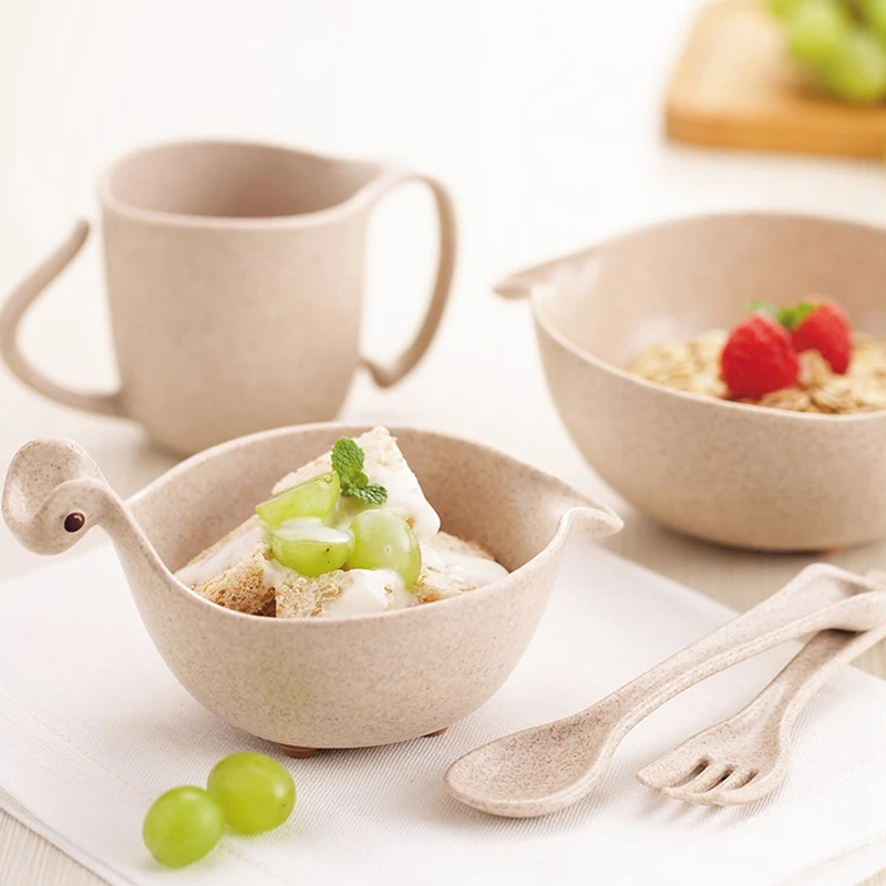 Hot Sale 5 Pcs/Set Children Baby Bamboo Tableware Feeding Dinosaur Dishes Infant Bowl Plate Cup Spoon Fork D